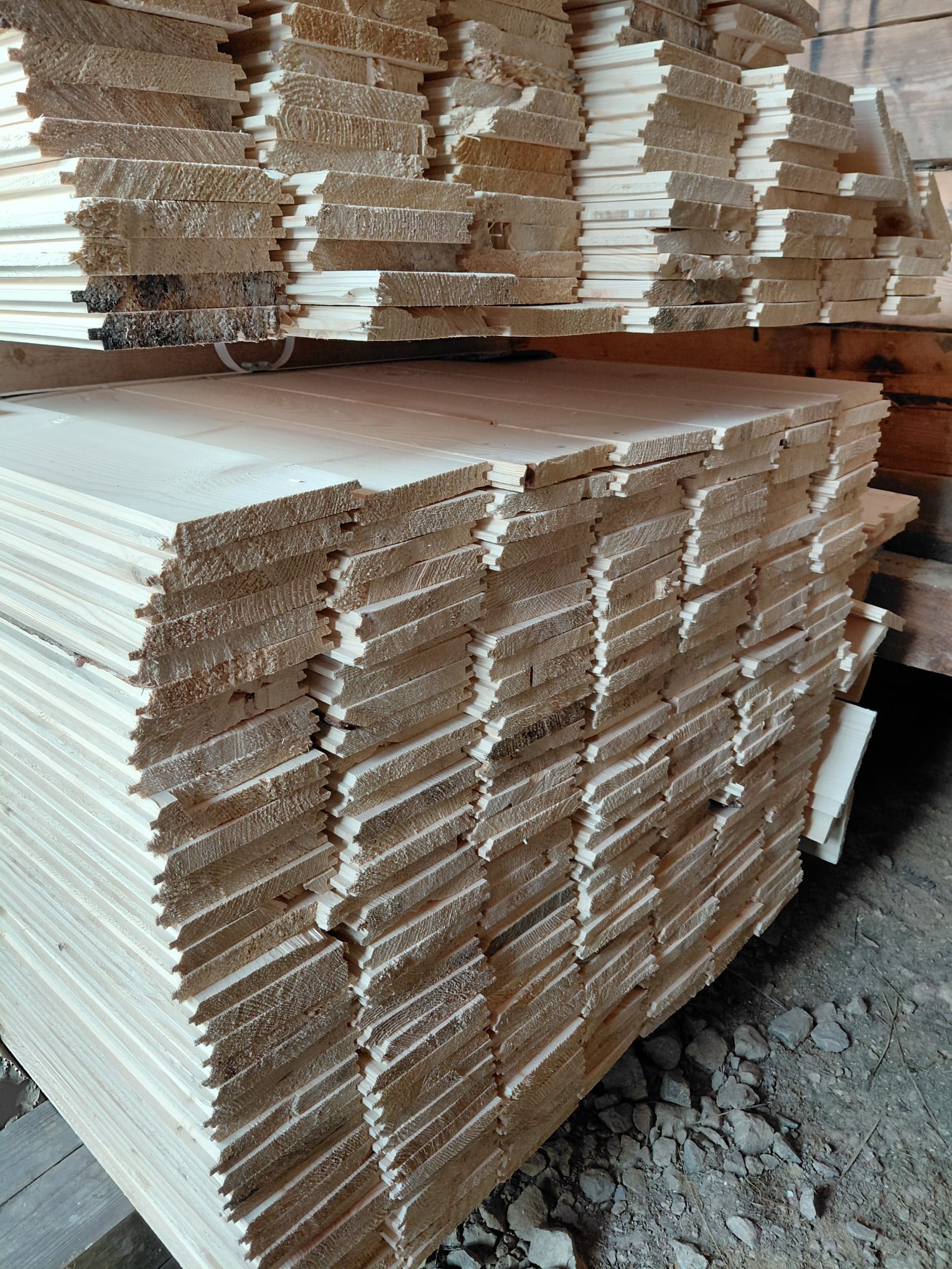 Lambriu din lemn de molid, uscat in uscator.