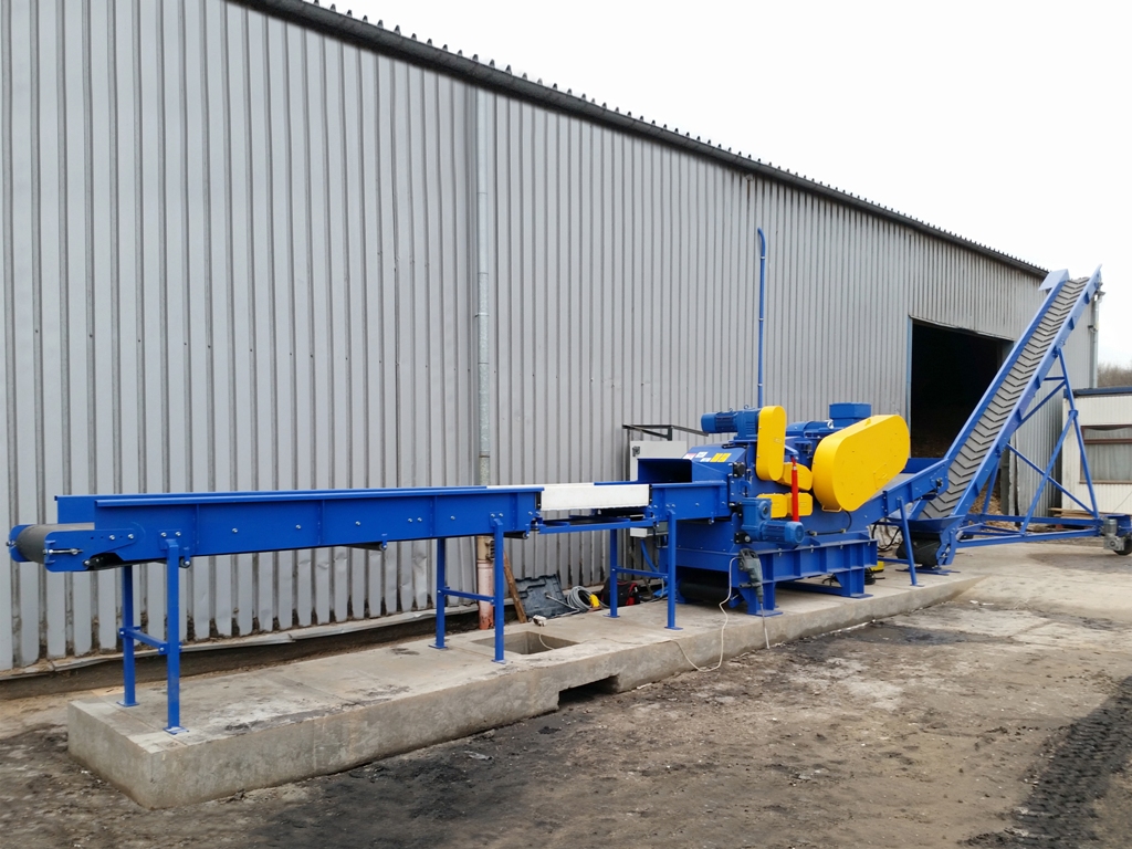 Tocator stationar cu motor electric (110 kW sau 132 kW) pentru tocarea laturoaielor, lemnului rotund, deseuri lemnoase.